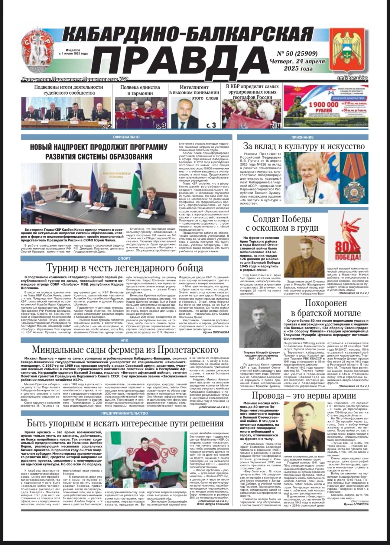 | https://smikbr.ru/kbp2025_50 Газета "Кабардино-Балкарская правда" опубликовала статью, посвященную прошедшей XX Конференции судей Кабардино-Балкарской Республики ![]() ![]() |